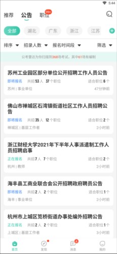 在最新发布的公告里,你能够知晓自己所关注地区当下公布的新考试公告。这里的公告信息与官方网站保持同步,通过新公告,你不仅可以查看公告详情、职位列表,还能看到与该公告相关的报考小提示。