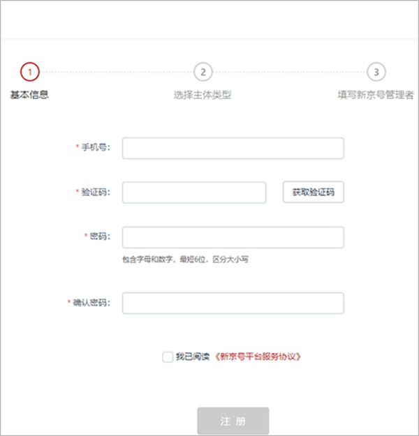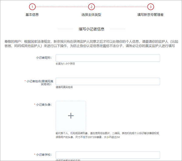 2、请小记者按照提示完成基本信息填写,完成注册。