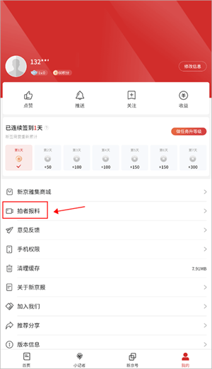要是想在新京报app官方版中进行爆料,具体该怎么做呢?第一步自然是要打开软件,接着点击“我的”界面,在功能板块里点击【拍者报料】。