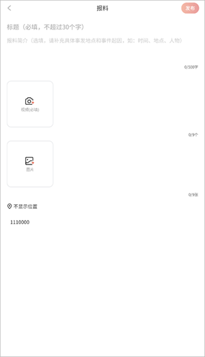 最后填写你要报料内容、以及相关视频,图片,点击发布即可。
