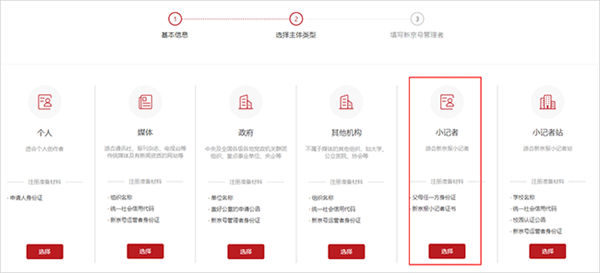 3、请小记者在“选择主体类型”中点击选择“小记者”。