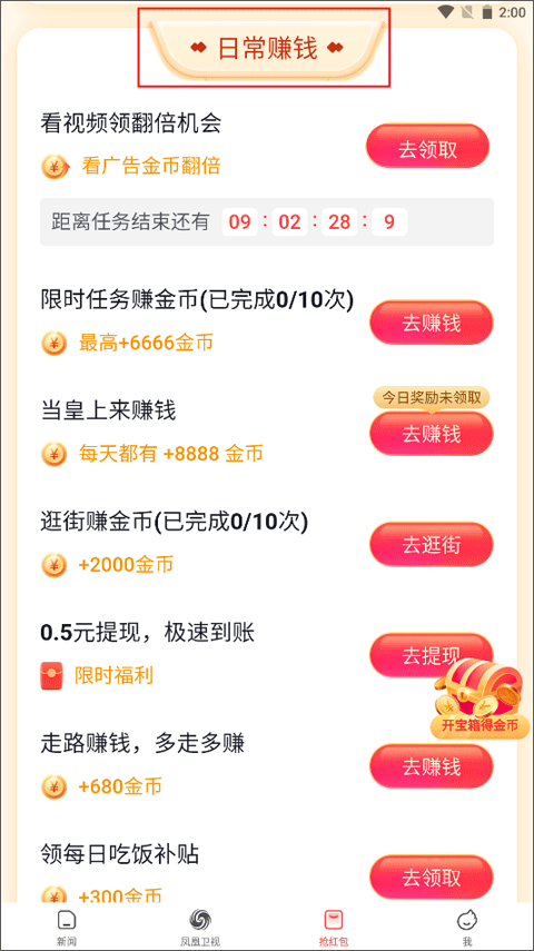 (3)每天五篇新闻资讯就可以获得20个金币。