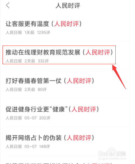 在搜索页面中点击查看“人民时评”更多精选。(如图所示)