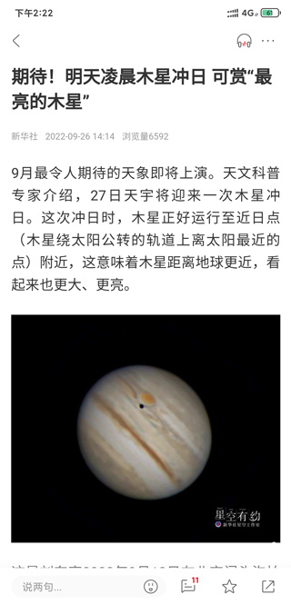 我们打开人民日报里面想要阅读的新闻,点击右下角有一个星星一样的图标,这个就是收藏;