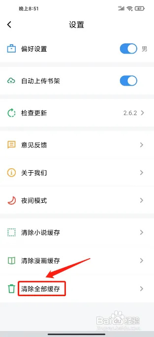 第三步:进入设置,点击【清除全部缓存】。