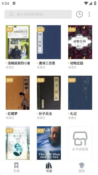 2、书架是可以去收藏任意自己喜欢的书籍,方便你选择阅读。