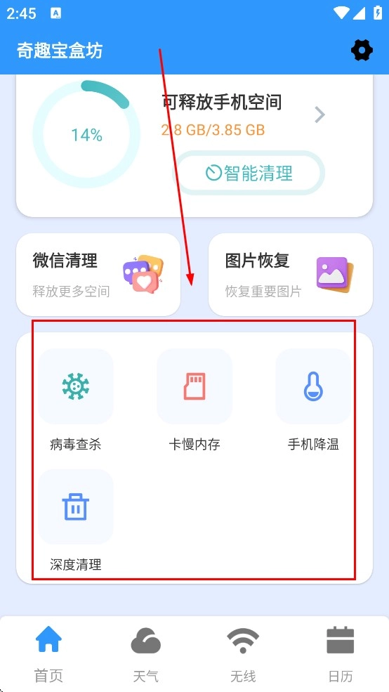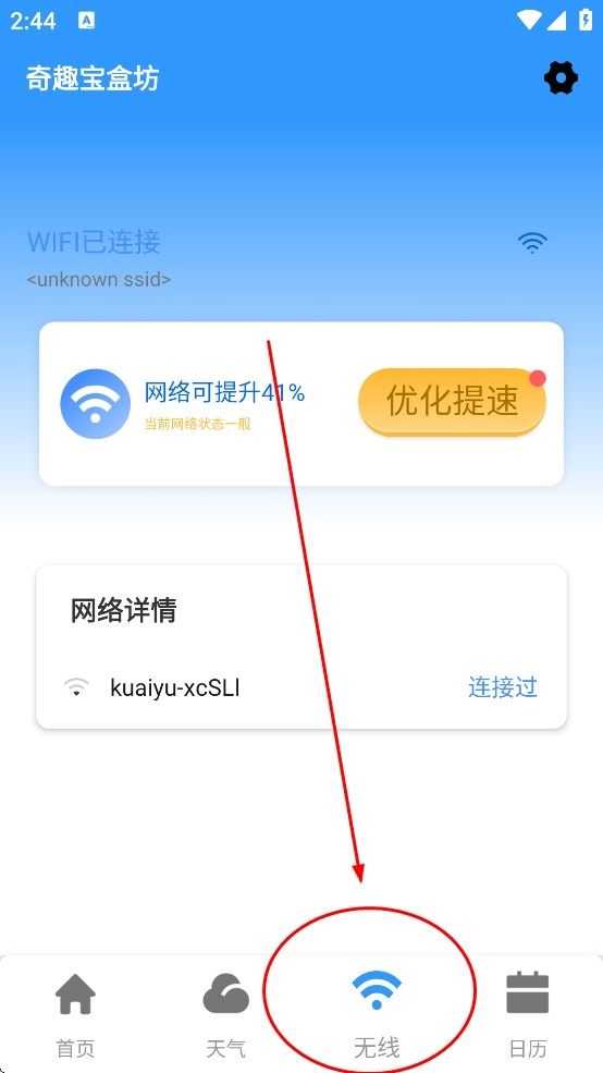 2. 主界面具备多种功能,轻点“无线”选项,就能查看WiFi信息。